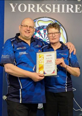 Saturday saw the ladies ‘B’ chalk up a creditable 4-2 win with Macy Gibbons their top lady beating Michelle Binns 3-1 with a 22.41 average. The men’s ‘B’ finished all1square at 6-6 to give the away side a 10-8 lead after the first day’s games. Taking the match award for the men’s ‘B’ was William Naylor who won 4-2 against James Robins and averaged 26.68.
